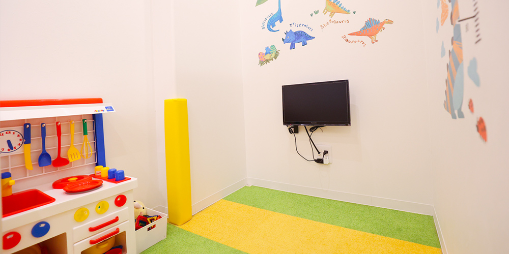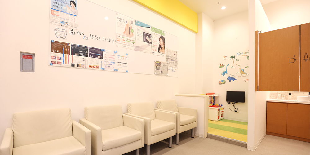 当院は、さまざまなご事情をお持ちのかたが通いやすい歯科医院であることを大きな特長としております。お子様連れのかたも安心してご来院いただけるよう、院内にはキッズルームを完備。その他通いやすさを重視し、土日診療・駅直結での利便性、お車でお越しのかたのためには提携駐車場までご用意しています。